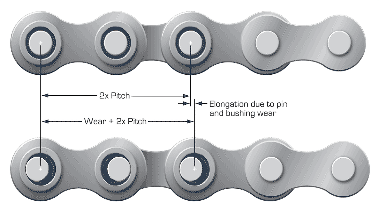 Unter Dehnung versteht man die Dehnung oder Verlängerung der Kette im Laufe der Zeit. Es entsteht, wenn die Bolzen und Buchsen der Kette verschleißen und die Kette dadurch länger wird. Dehnung führt zu erhöhtem Pi…