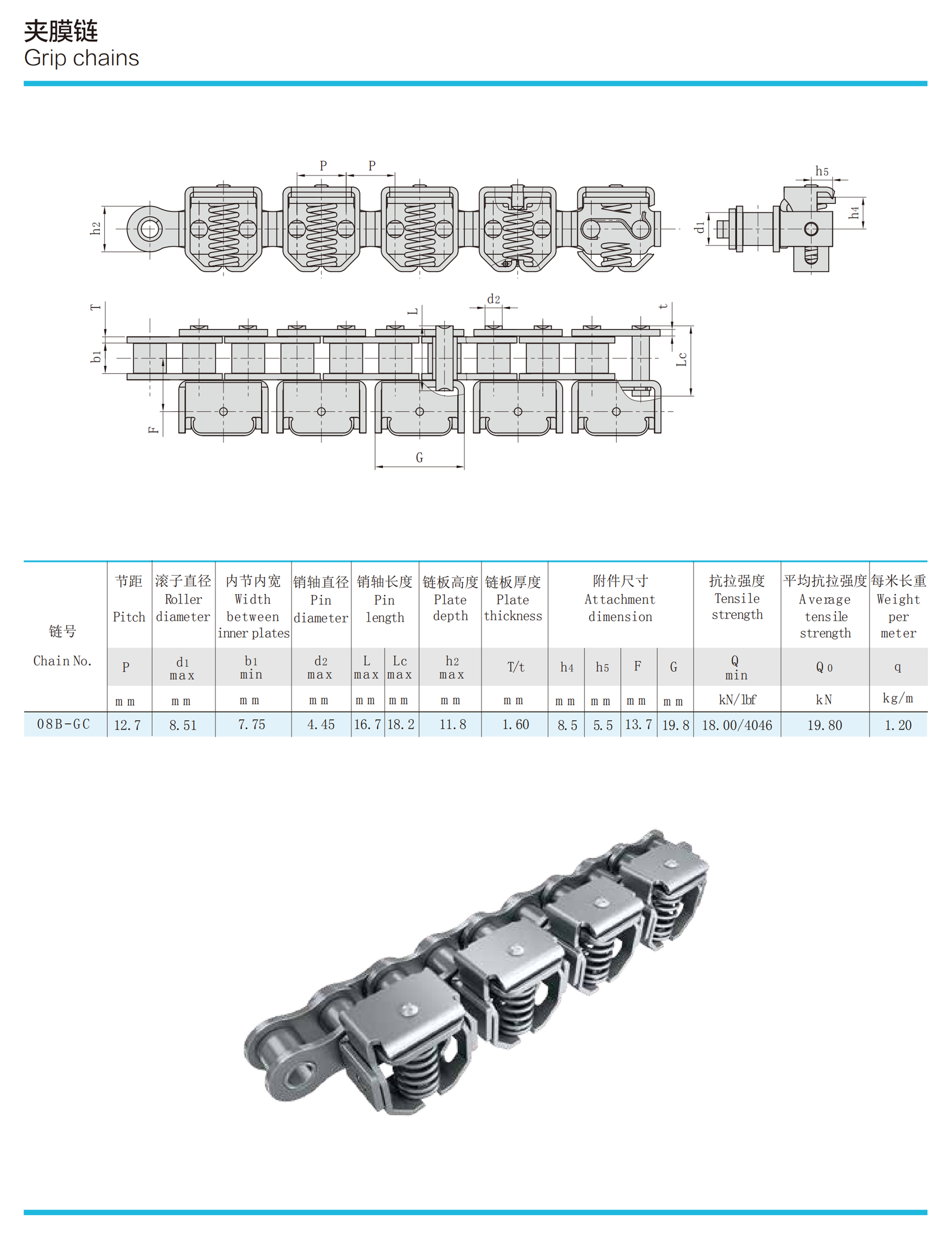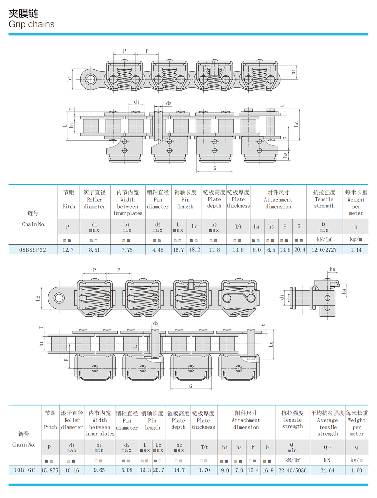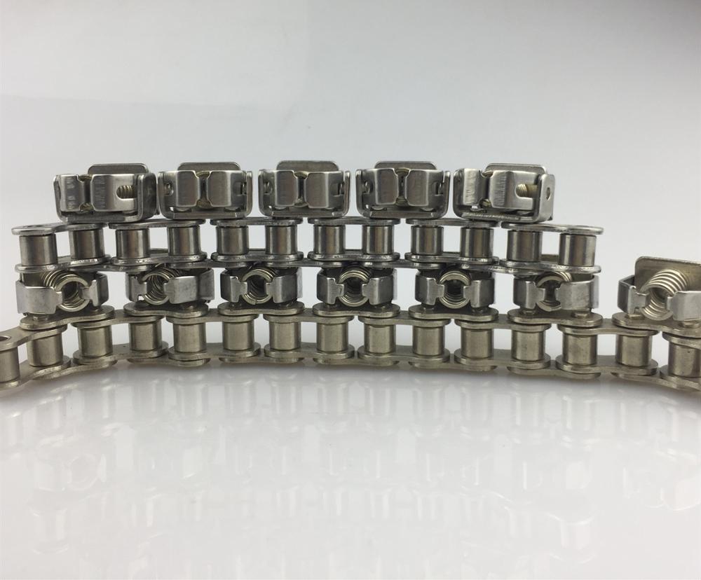 Die Greiferkette für Landmaschinen ist eine Kette, die zum Klemmen und Transportieren von Erntehalmen an Landmaschinen wie automatischen Dreschmaschinen und Halbfutter-Getreideerntemaschinen verwendet wird. Daher wird dieser Kettentyp auch als Landmaschinen-Einzugskette, Dreschkette bezeichnet und die Klemmkette wird in eine Kettenkonstruktion ohne Hülse und eine Innenkettenkonstruktion mit Hülsenkette unterteilt. Spannketten sind in Reiserntemaschinen weit verbreitet. Der grundsätzliche Aufbau der Kette ähnelt dem von Hülsenrollenketten. Seine Eigenschaften sind, dass die Kettenplatte hoch zugespitzt und gezahnt ist und die innere Breite des inneren Abschnitts groß ist, um die Breite und Festigkeit der Klemmung zu erhöhen. Im Betrieb bilden die Klemmkette und die Führungsschienen gemeinsam eine Stütze und Klemmung für die Ernteguthalme und verlassen sich auf den Betrieb der Kette, um das Ziel eines gleichmäßigen Transports zu erreichen